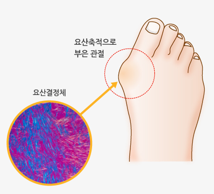 생성이 과다하거나아니면 정확히 배출하지 못할 경우, 몸 속에 적립되어 혈중농도가 증가하기도 하는데 과다한 요산이 관절에 적립되면 통풍이 생겨날 수 있다고 합니다.