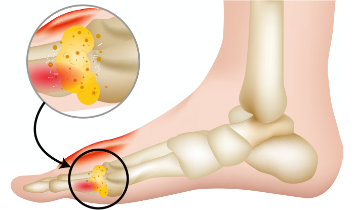 통풍은 엄지 발가락에 일어나는 관절염으로 요산수치가 높아지면 생기는 것으로 요산은 단백질의 한가지인 퓨린이 들어간 식품을 과다 하게 받아들이면 요산 수치가 증대하는데요. 대사되면서 보통은 신장에서 누출되서 소변으로 누출되며 나머지는 대변으로 배출돼요.