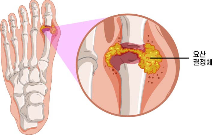 만일 요산이 과포화정황에 접어들게 되면 요산의 모양이 바늘모양으로 전환되어 조직에 쌓이기도 하고요.아주 드물게 요산이 관절 부위에너무하게 축적될 경우 통풍에 표출될 위험성이 높아요.만약 신장에 누적된다면 신장 질환이 유발될 수도 있으기 때문에 특이 유의가 요구돼요.